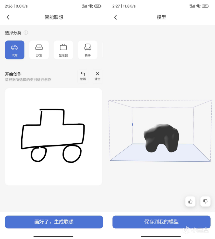 智能联想同样也是beta版,选择常见的物体分类,然后在画板上画出你想要的样子,AI会帮你完成。