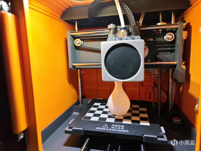 打开“柜门”,可以看到内部的打印元器件,甚至可以直接看到整个打印过程;也是通过这里取出打印完成的模型。