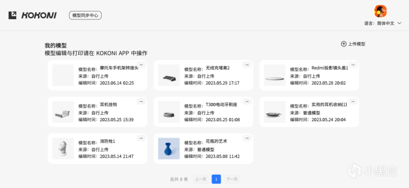 通过官网的模型同步中心,便可以导入使用Cinema 4D等软件建模完成的stl、obj文件,限制50MB大小。