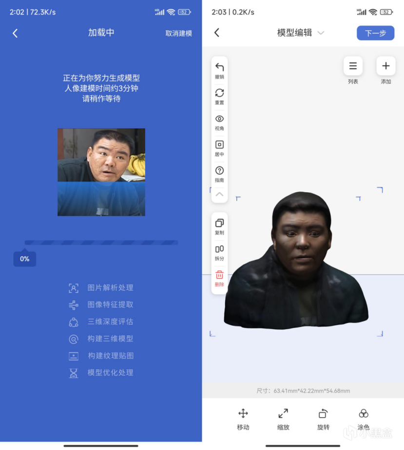 人像建模,顾名思义,只需上传一张2D的人像照片,就能为你建模出活灵活现的3D人来打印。