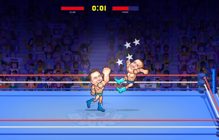这款网页小游戏,动作玩法非常出色,提供了完善的操作方式,包括防御、跳跃攻击和终极技能等要素。终结技的花样繁多,有时甚至会有观众扔折叠椅作为武器投向擂台,增添了一些趣味性