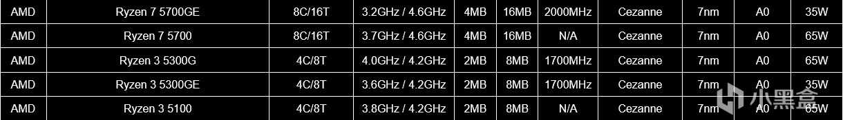 此外,AMD的銳龍5700和銳龍5100 CPU泄露