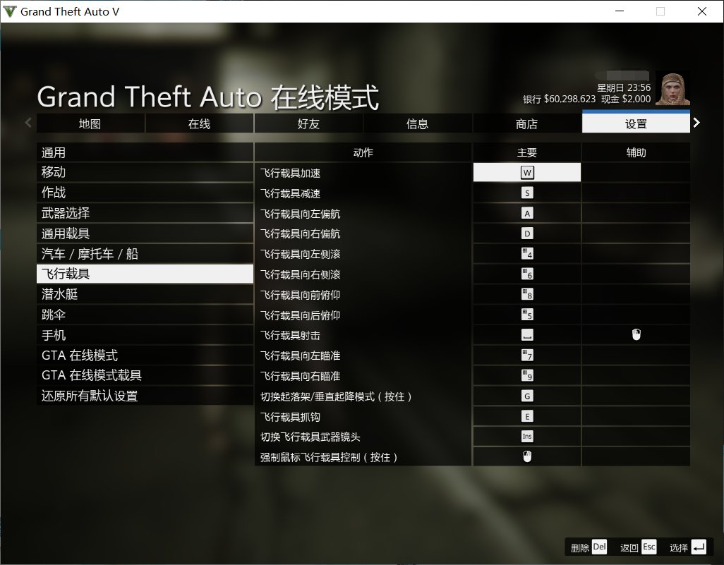 A与D控制转向舵,即飞机要往左飞还是往右飞,但平飞状态下转向幅度很受限