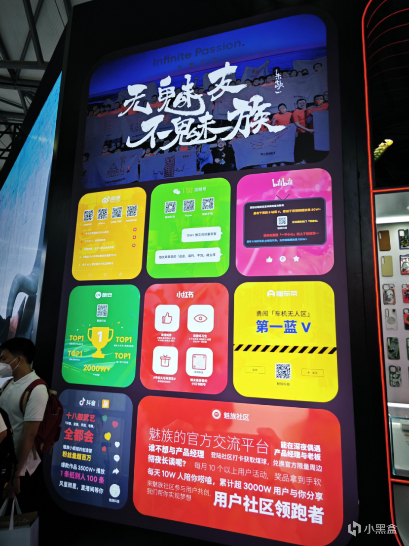 魅族20 PRO展台上,最令大家喜欢的还是小黑……啊不,晨曦紫。还有那无处不在的热爱无界slogan。