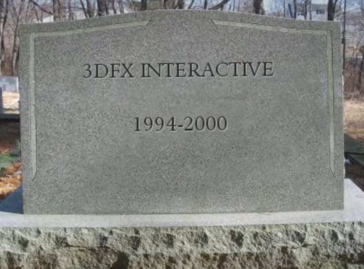 Voodoo5在發佈時遭到了致命的延誤,導致英偉達推出了革命性的GeForce 256芯片(掀起獨立顯卡的熱潮)結果Voodoo5不得不用舊芯片但提供更高的拓展性以求擊敗對手,可惜生不逢時,Voodoo5進入市場時被迫與他的後輩們GeForce 2 和ATI Radeon競爭,而後者以相同的價格給出更高的性能。即便Voodoo5銷量並不差勁,顯然並不足以維持3dfx的運轉,在管理層幾次錯誤的決策後,3dfx這個曾與綠紅相爭的第三家黯然破產。