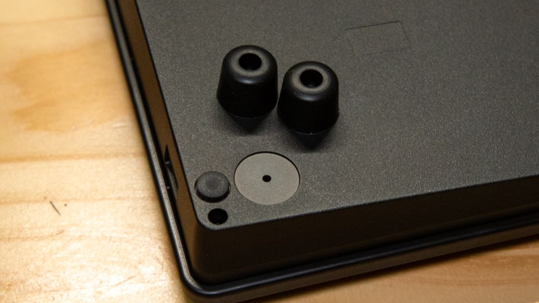 腳撐和鍵盤的擺放方式一樣自由,附送的四個橡膠腳墊可以隨喜好擰在鍵盤的孔位上。