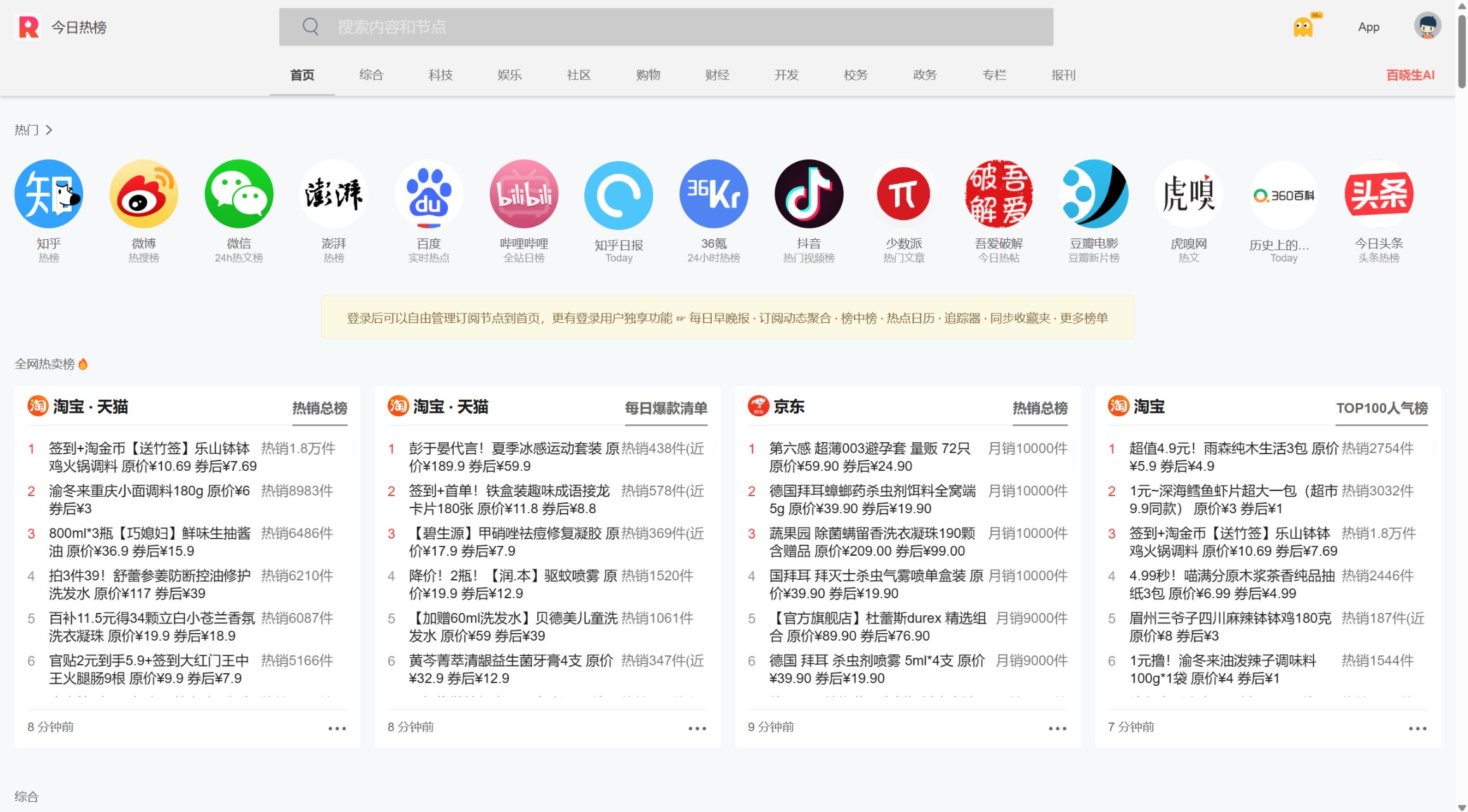 比如板塊第一個“今日熱榜”,只需通過此網站,便可快速尋找全網主要平臺的熱點,做到“全網熱點,一網打盡”!對什麼感興趣,點擊即可瀏覽。