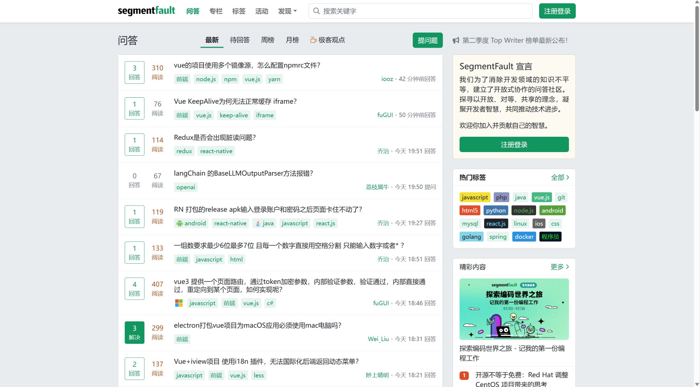 又比如“幫助1000萬開發者解決各種各樣的技術問題”的國內專業的技術社區Segmentfault——
