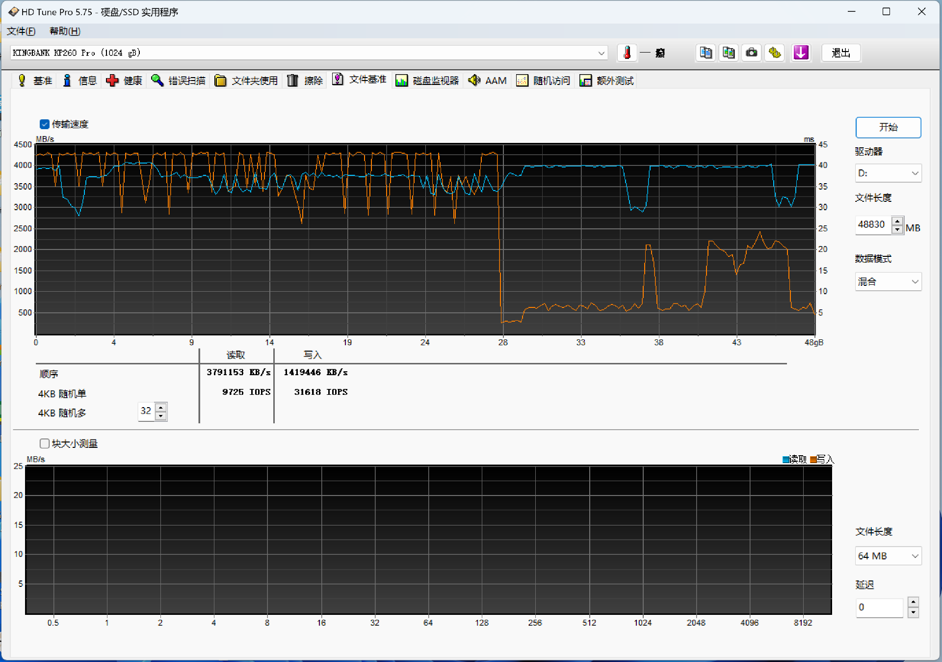 鑑於此,這裏順帶對金百達KP260 Pro的緩外4K隨機直讀性能進行了測試,結果爲33.58MB/s。