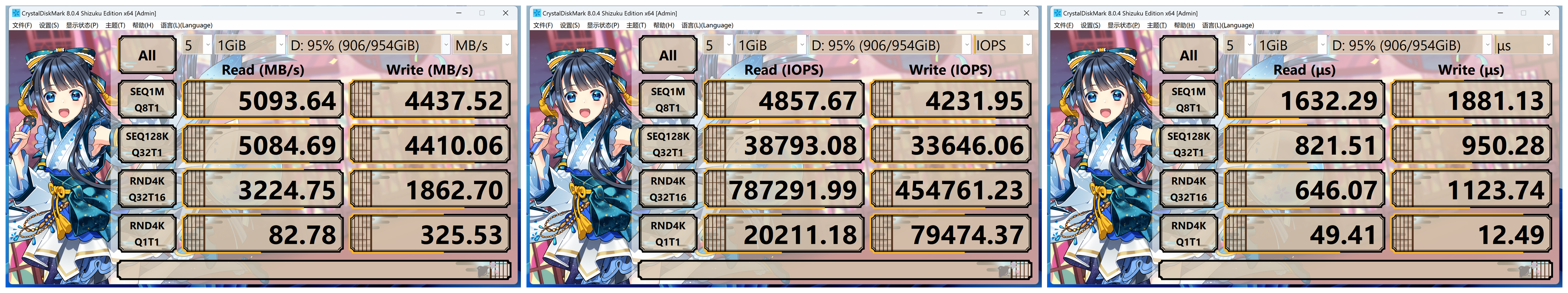 95%滿盤狀態下,金百達KP260 Pro的順序讀取速度爲5093MB/s,順序寫入速度爲4437MB/s,與空盤狀態相比並沒有發生明顯的性能下降,並且在將近滿盤的情況下也沒有SLC緩存失效的痕跡。