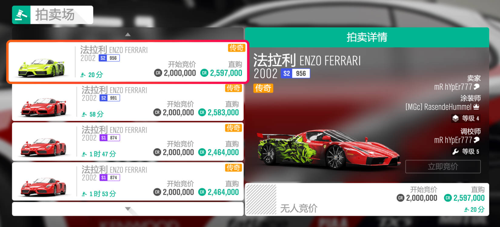 奖励车辆为:2002款法拉利 ENZO FERRARI