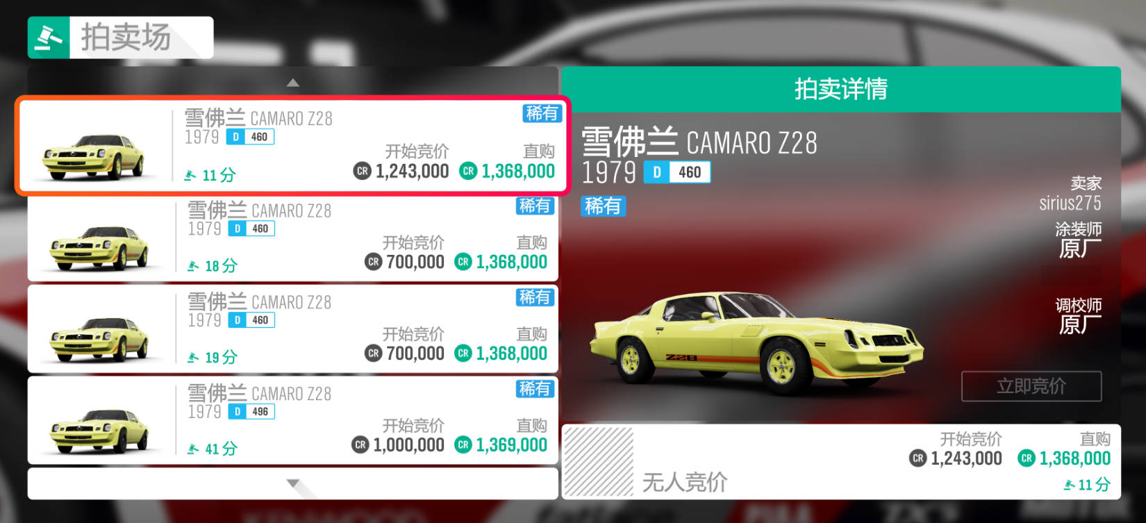 奖励车辆为:1979款雪佛兰 CAMARO Z28