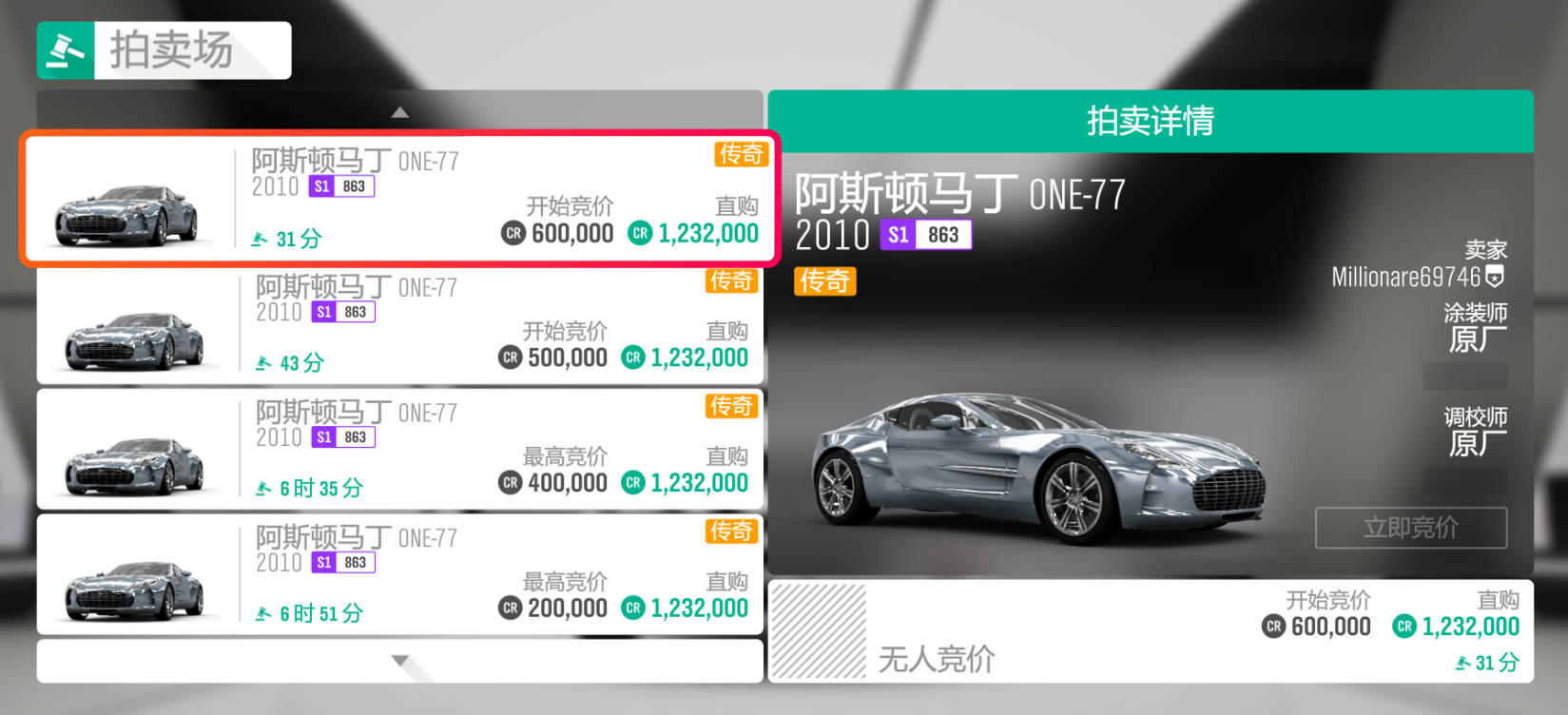 奖励车辆为:2010款阿斯顿马丁 ONE-77