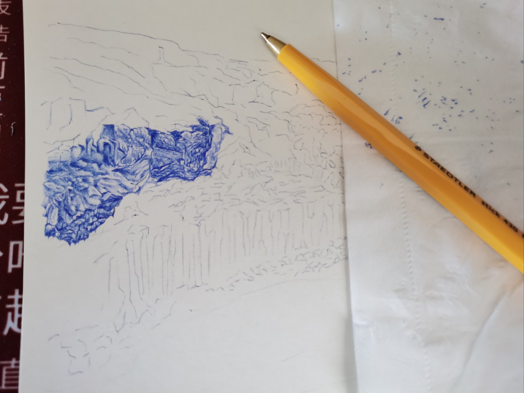 圓珠筆的另一個問題就是長時間用單一角度與紙面接觸使用,就會出現油墨堆積從而造成漏墨,因此畫畫時還得備上紙巾,一來用於墊手,而來擦拭筆頭,將多餘的油墨擦除