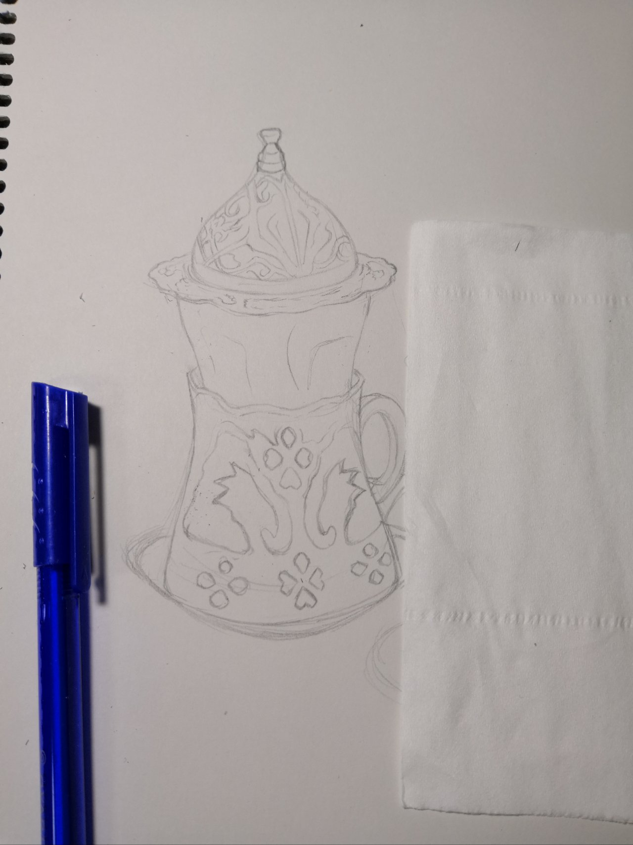 圓珠筆畫的首要重要步驟就是起稿。我使用的是晨光金屬自動鉛,這支筆是當年從文具店隨便挑的,手感相對較重,我很喜歡,已經陪伴了我大約十年了