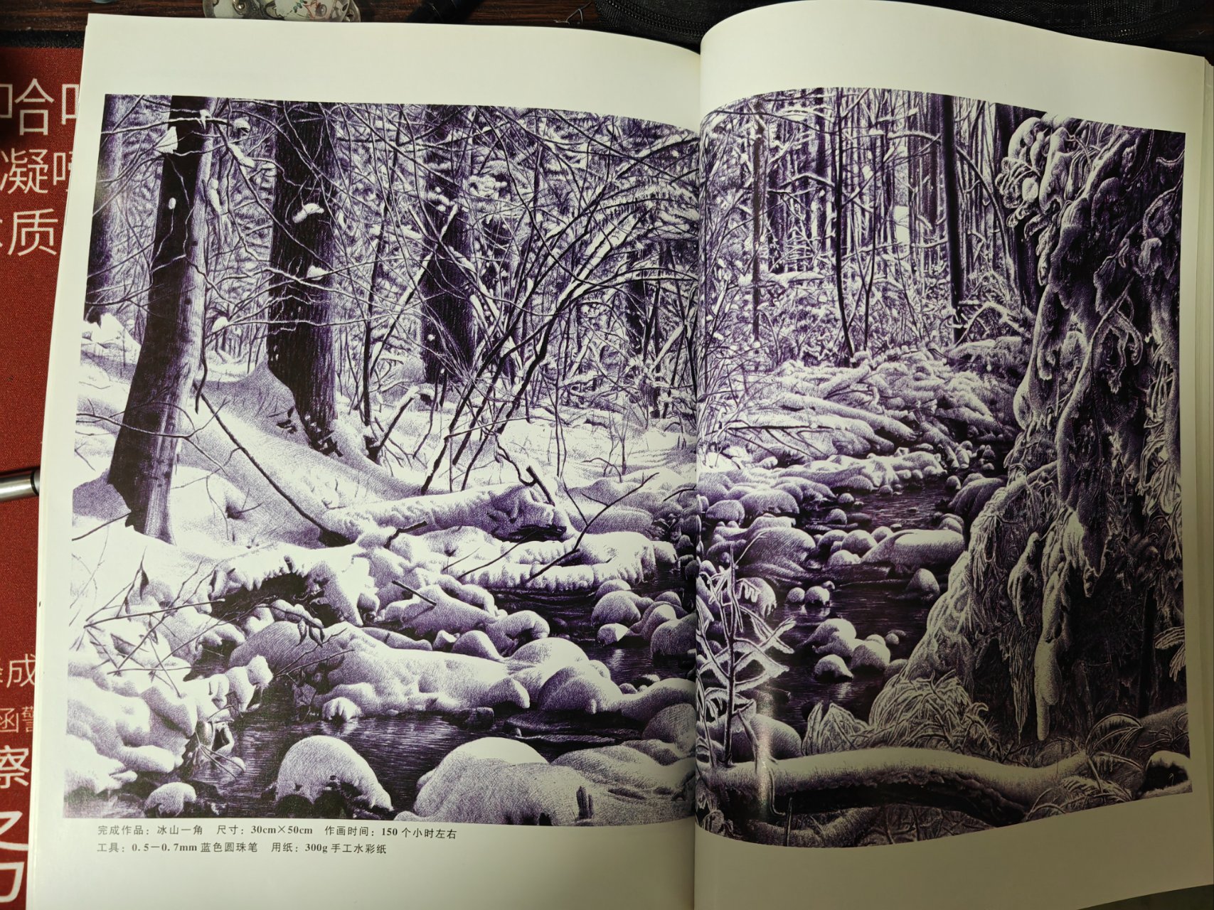 最後就是OY歐陽鵬傑在書裏展示的一些作品啦,也是圓珠筆畫的諸位代表人物之一,我當初入坑也是偶然在網上看到了OY的帖子的,他在B站也有號,經常會發一些視頻。