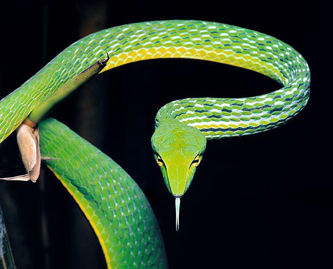 這些蛇有尖尖的鼻子和極其修長的身體。