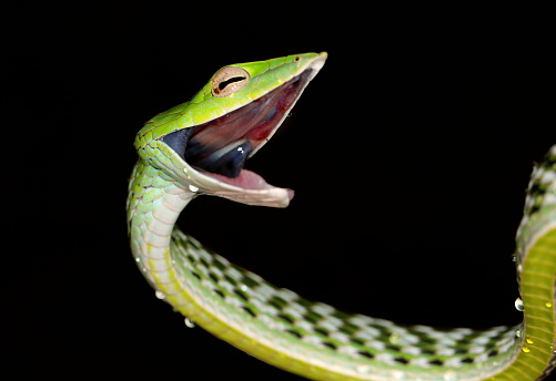 作爲遊蛇類,不具備真正的毒腺或複雜的毒液輸送系統。它們幫助毒液輸送的尖牙,位於上頜的後部。而不是像毒蛇或眼鏡蛇那樣位於前面。