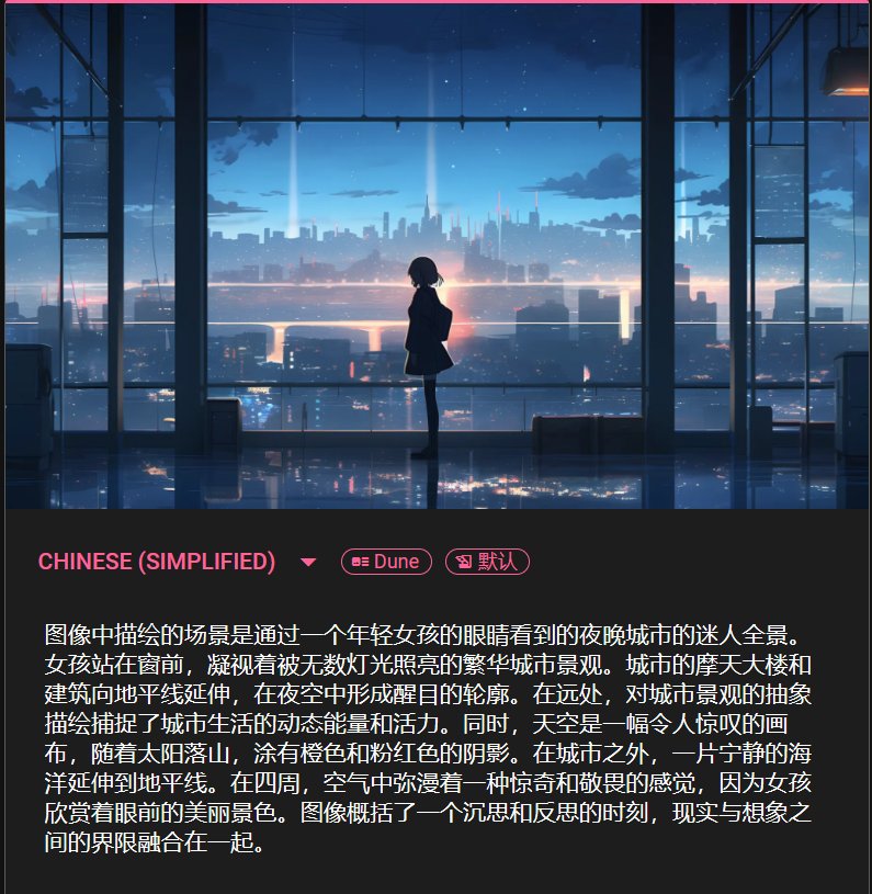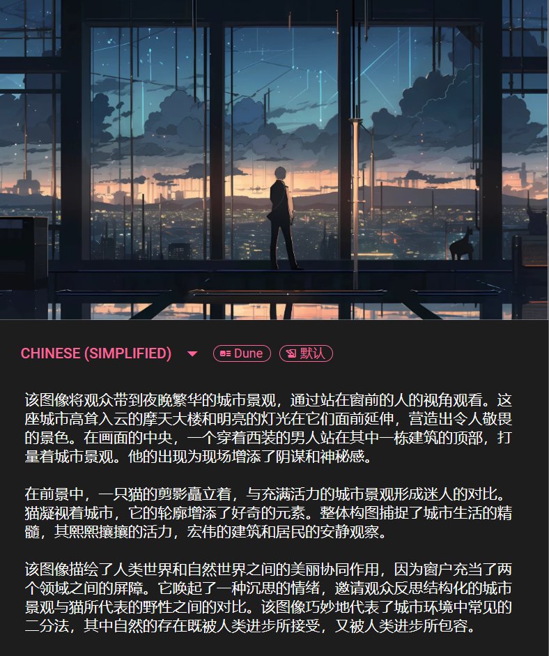 簡單來說,就是圖生文——根據導入的圖片,提供探索超越像素的圖像敘事!