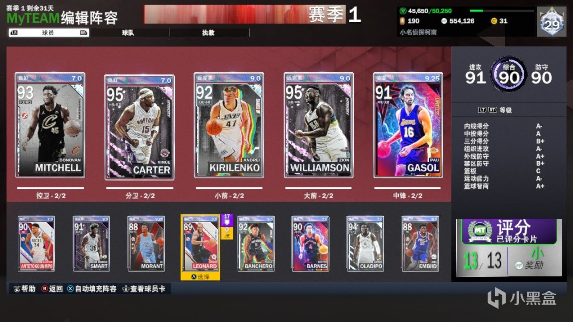 至于我最爱的模式——MT,“my team”,顾名思义便是需要我们组建一只属于自己的队伍。在这个模式里,我们队伍既可以招募到自己喜欢的NBA当打球星,也能让上古神兽齐聚一堂,成为篮球盛宴的合家欢。不同于其他模式,MT模式的同一个球员卡有着不同的颜色,按着颜色的升级球员也会升级不同的能力值和徽章,不过NBA2K23球员卡包更新速度出了名得快,可能这周你高价买的球员卡下周就只能给新卡包打个替补了。