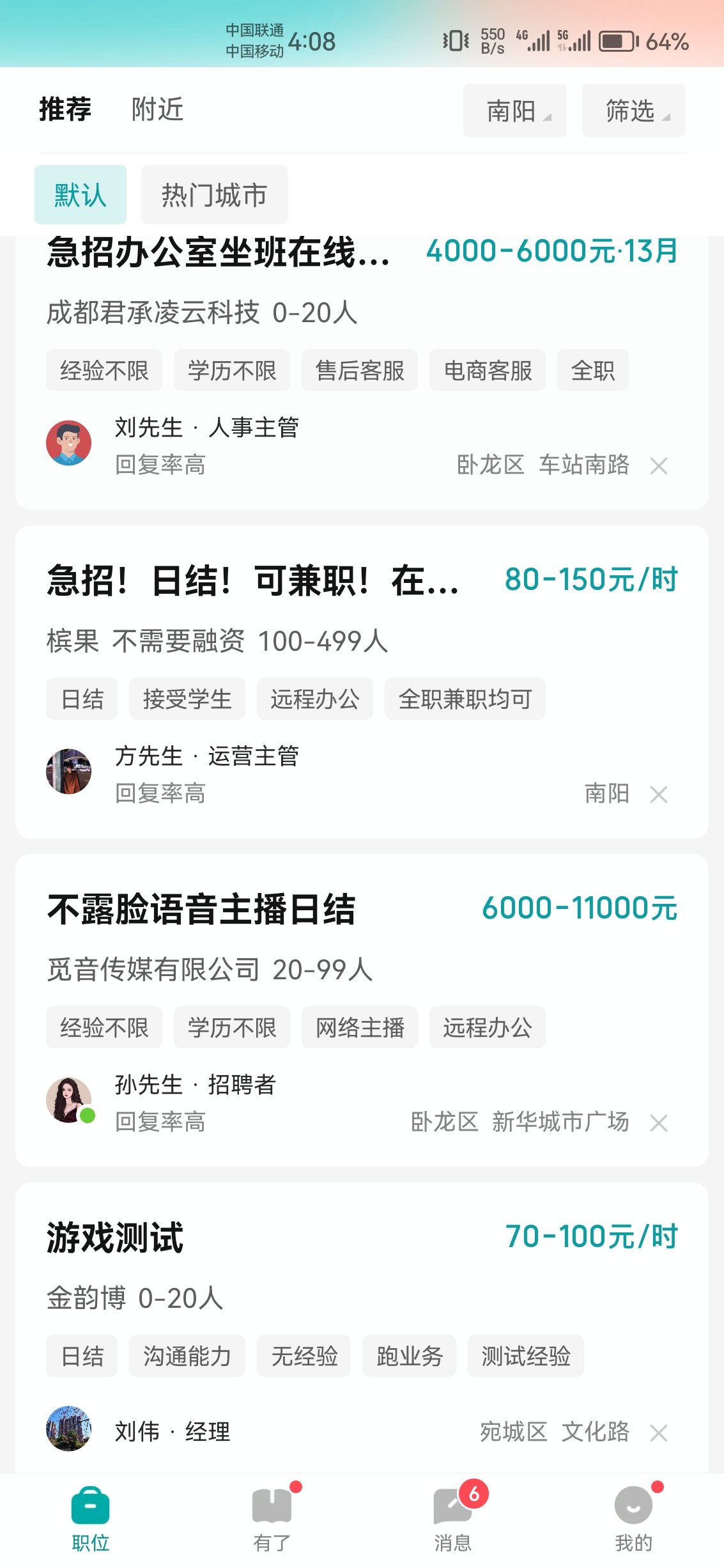 還有下面這種和你求職的地方與他們公司地方不符合的,比如我現在下面填寫的是南陽的工作,出來的公司都是別的省的
