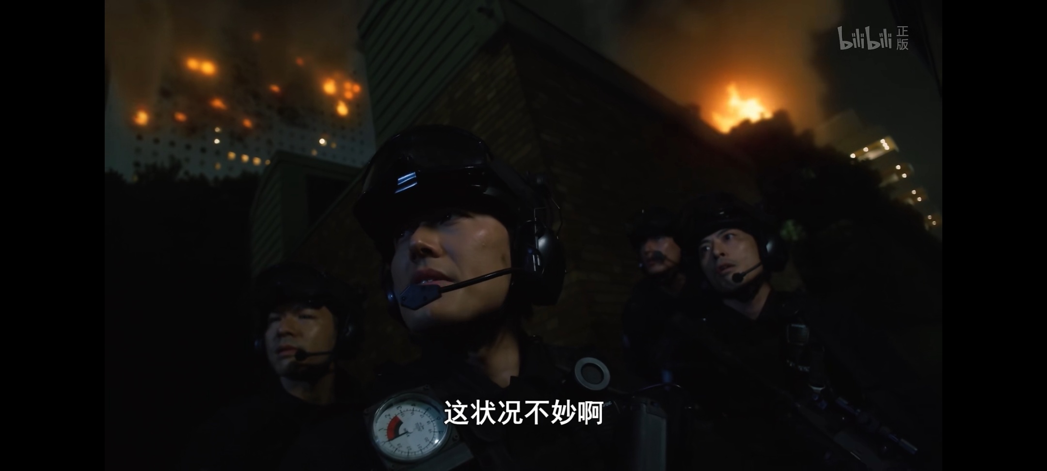 大量貼臉鏡頭,在人物後面模糊的城市外景全是火焰,展現城市被破壞的痕跡。