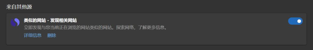 使用Edge瀏覽器的話,打開“管理擴展”選項,在“查找新擴展”一欄中,通過某種方法在Chrome Web Store中下載獲取similarsites的擴展,將其應用於Edge瀏覽器即可。