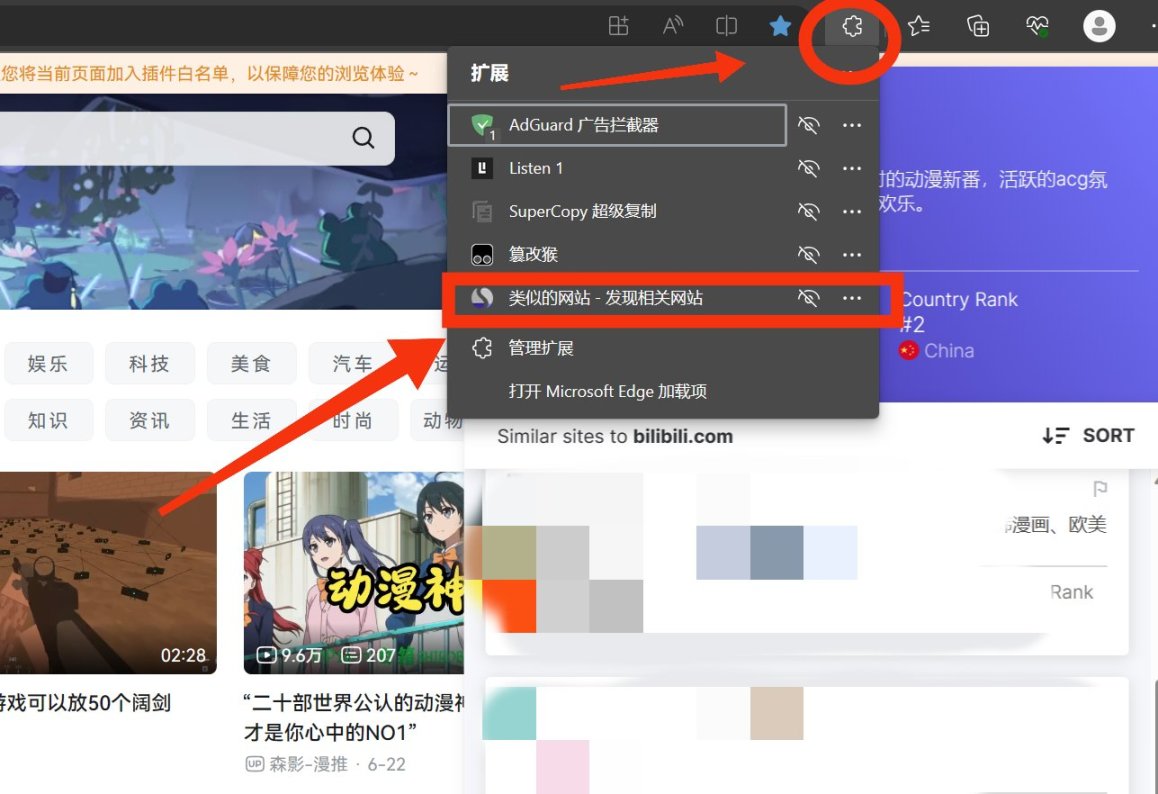 如果你使用的是谷歌瀏覽器,在Chrome應用商店搜索similarsites下載安裝即可;