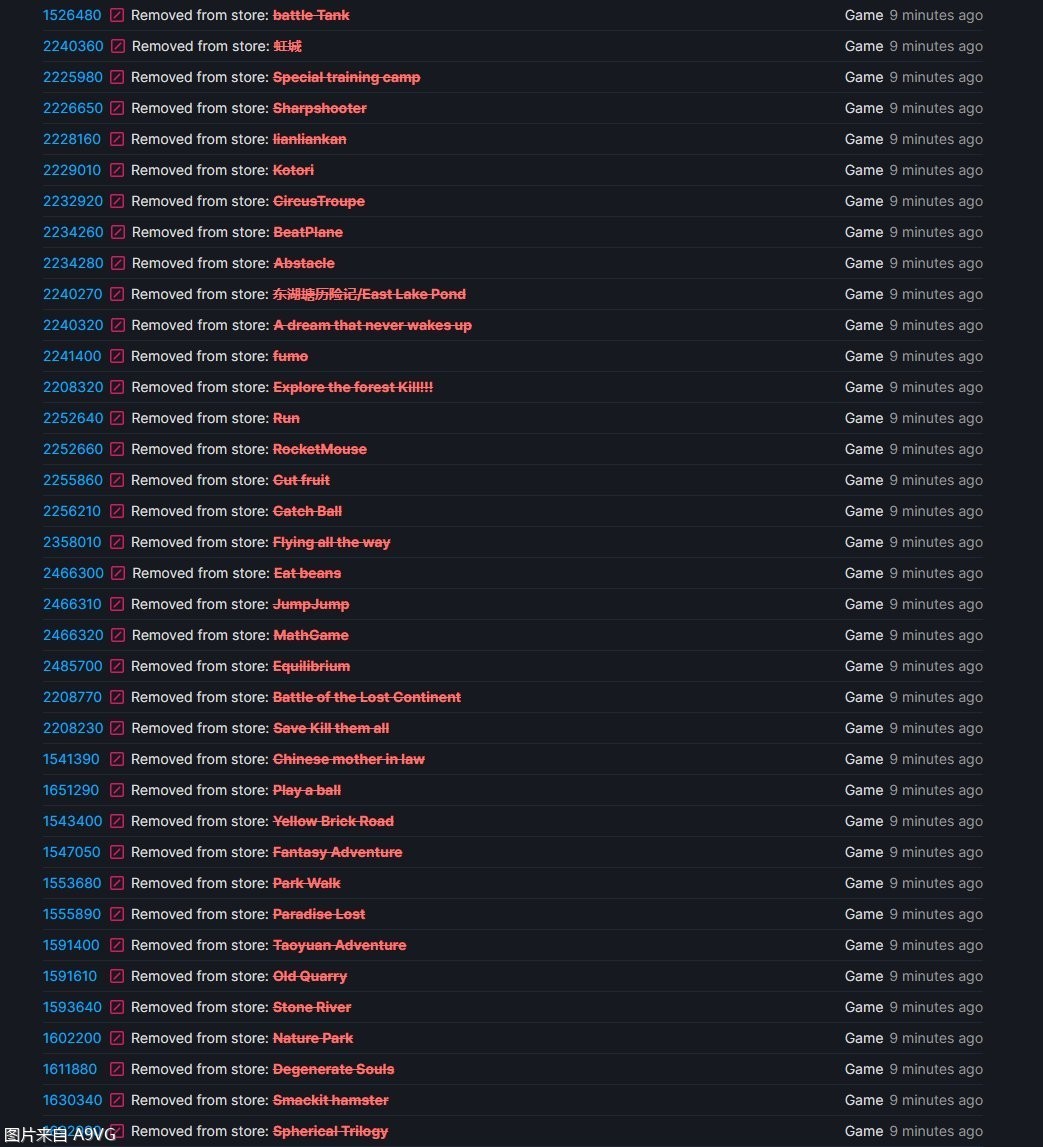 海外市场调查机构GameDiscoverCo的数据战略协调专员Alejandro发现,近日Steam下架了一批游戏。