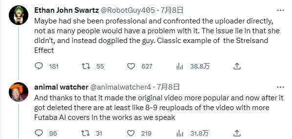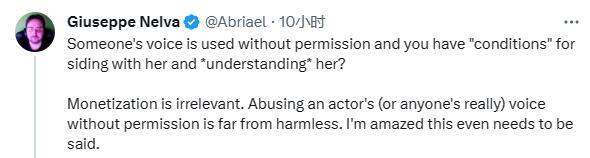 有玩家认为,只是用她的声音唱了一首歌而已,并没什么大不了的。况且做视频有不是为了收益,娱乐一下而已,没必要这么小气。也有玩家认为,利用AI工具滥用声音,会对配音演员本人造成多种影响,绝对不是无害的行为。