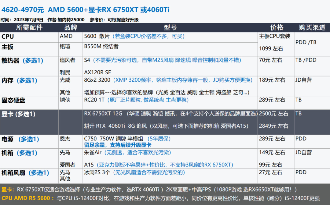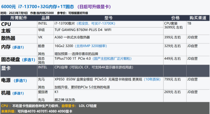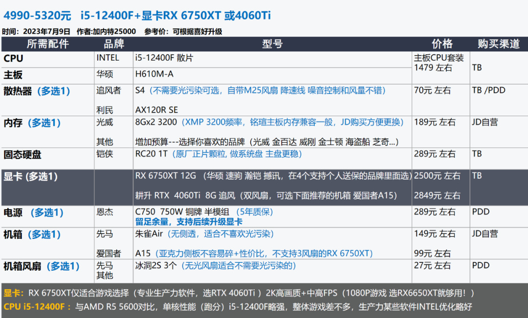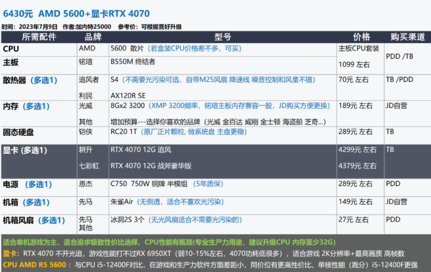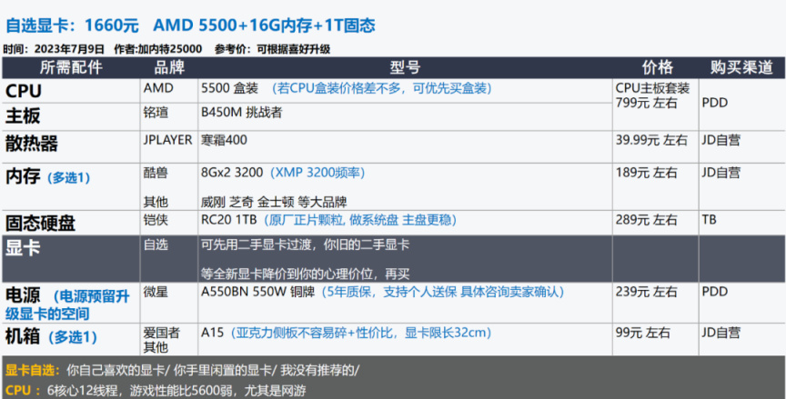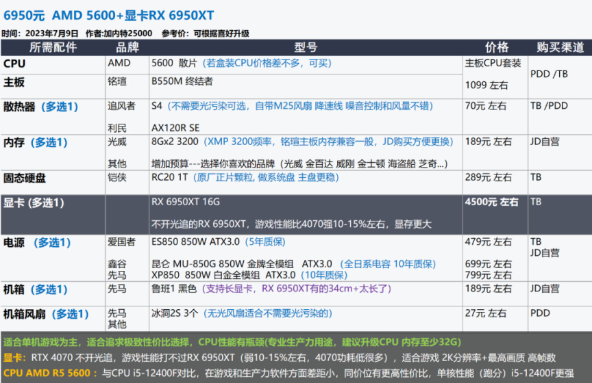 想7月裝機的朋友,如果你不知從何下手,不想喫虧上當,那你就非常適合看我的推薦