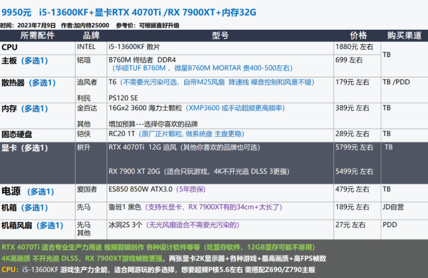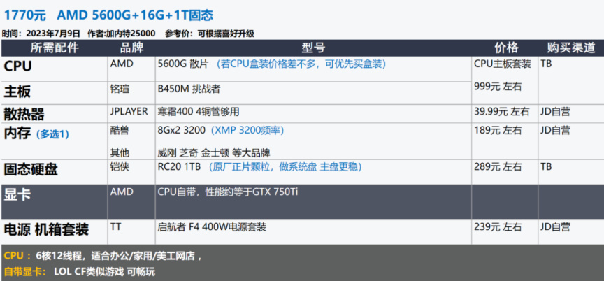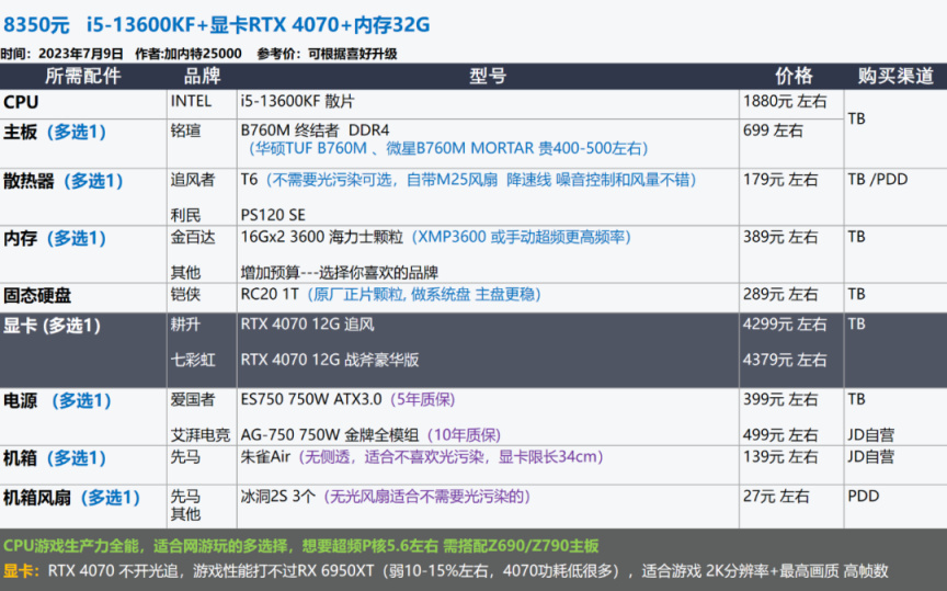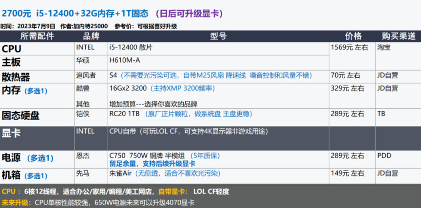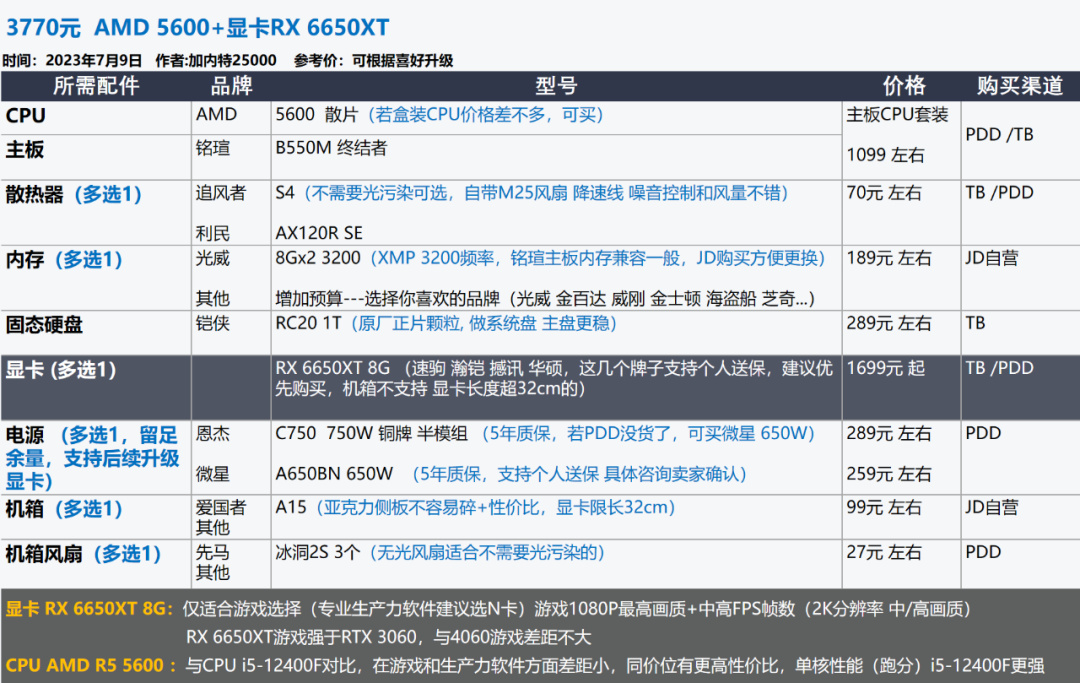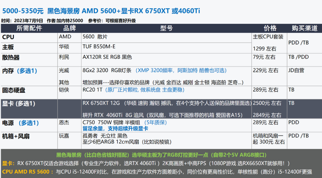 想7月裝機的朋友,如果你不知從何下手,不想喫虧上當,那你就非常適合看我的推薦