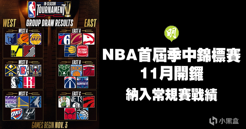 看起來很像歐冠和S賽小組賽的賽制,但是NBA季中賽又很特殊,即所有的比賽,都被視作是常規賽的一部分,季中賽期間所有比賽的場次和勝負關係將計入常規賽,只有參加季中賽總決賽的兩支隊伍需要比別的球隊多打一場。