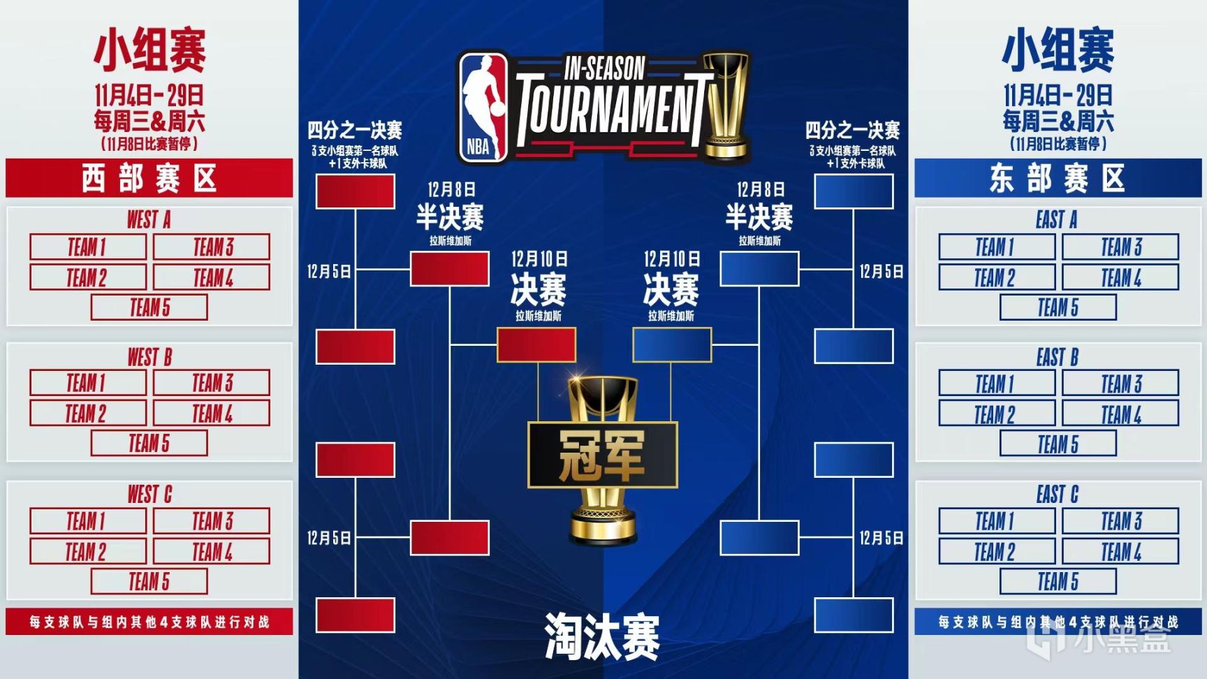本屆季中錦標賽半決賽和冠軍賽,將在拉斯維加斯舉行!與LPL季中賽時間類似,NBA季中賽也安排在82場常規賽期間,相當於一個完整賽季被切分爲季中賽前半段和後半段。