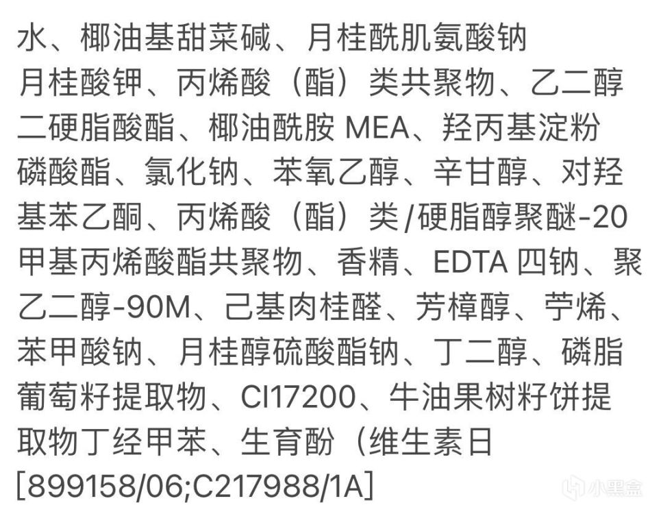 再看看成分,清潔主體是椰油基甜菜鹼,所以洗完會有滑感,復配氨基酸表活月桂酰肌氨酸鈉,稍顯廉價,此外還添加了皁基常用成分月桂酸鉀,增強配方的清潔力,有香精色素的添加,防腐體系採用低刺激的苯氧乙醇,苯甲酸鈉。整個配方看,清潔主體還算溫和,清潔力還可以。