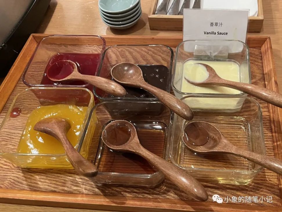 但給我留下第二個“一流”,即“早餐一流”的印象的,是其麪包甜點的櫃檯。首先是僅有部分酒店會做的雞蛋布丁麪包,在保證溫度的儲存下,能抿出爽滑彈嫩的蛋撻香,葡萄乾在其中的點綴,又爲略膩的口感增添了清甜的層次,確實好喫。還有淋上黑巧和白巧的兩種多拿滋,正宗美味的法棍和麥芬,以及兩種吐司和六種果醬的配備。說真的,凱悅的麪包甜點真的很少令人失望。我建議諸位有時間,就專門留一天的早餐時間,試試凱悅的各種麪包,真的值得這麼一品。