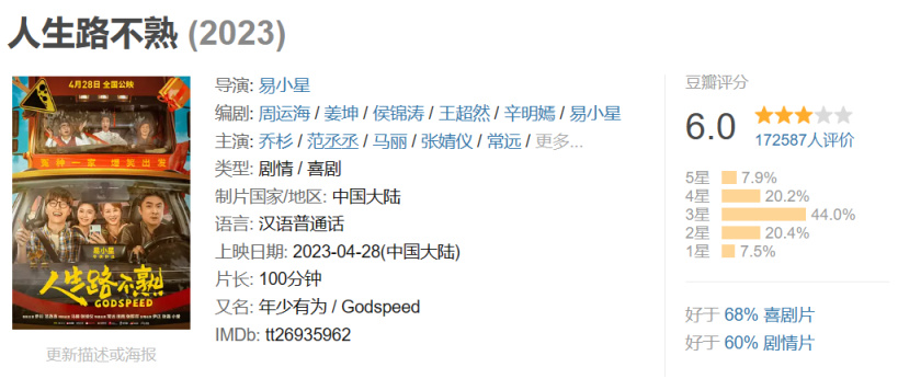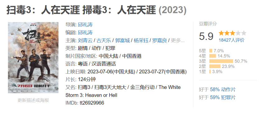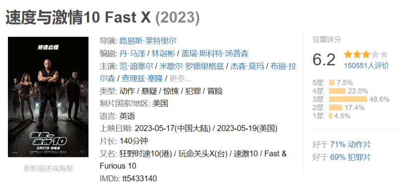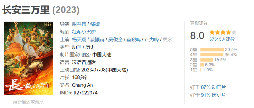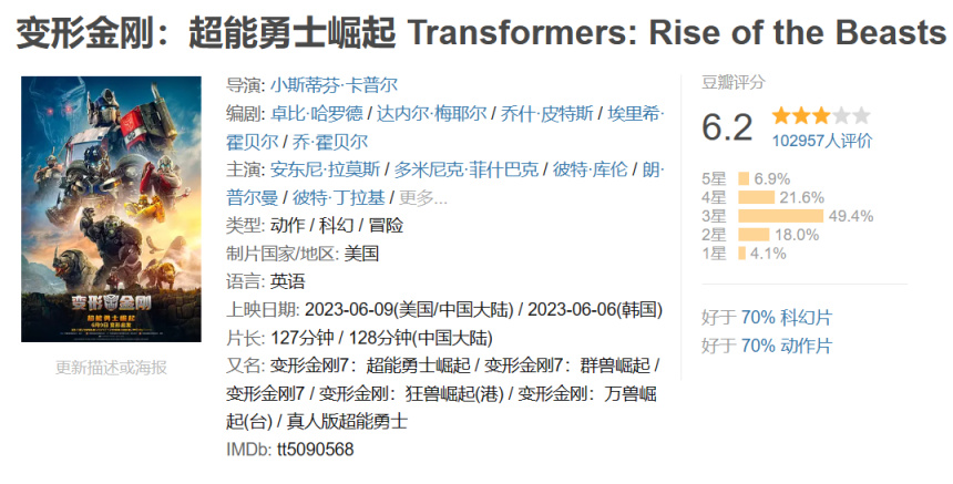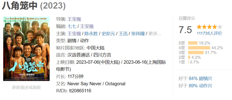 以下,将列举2023年暑期档票房榜单上电影的豆瓣评分(截至文章发出)与影片简介(来源豆瓣),顺序由先到后