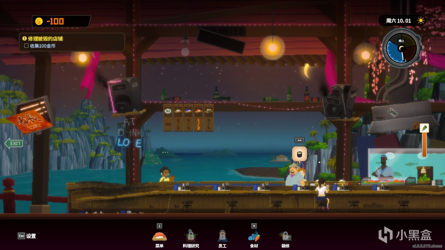 遊戲有着豐富的經營要素。在每天晚上的餐廳經營中,除了基本的紫菜壽司和綠茶之外,還要根據食材提供不同的菜單,還要隨時撤換沒有食材的菜單。