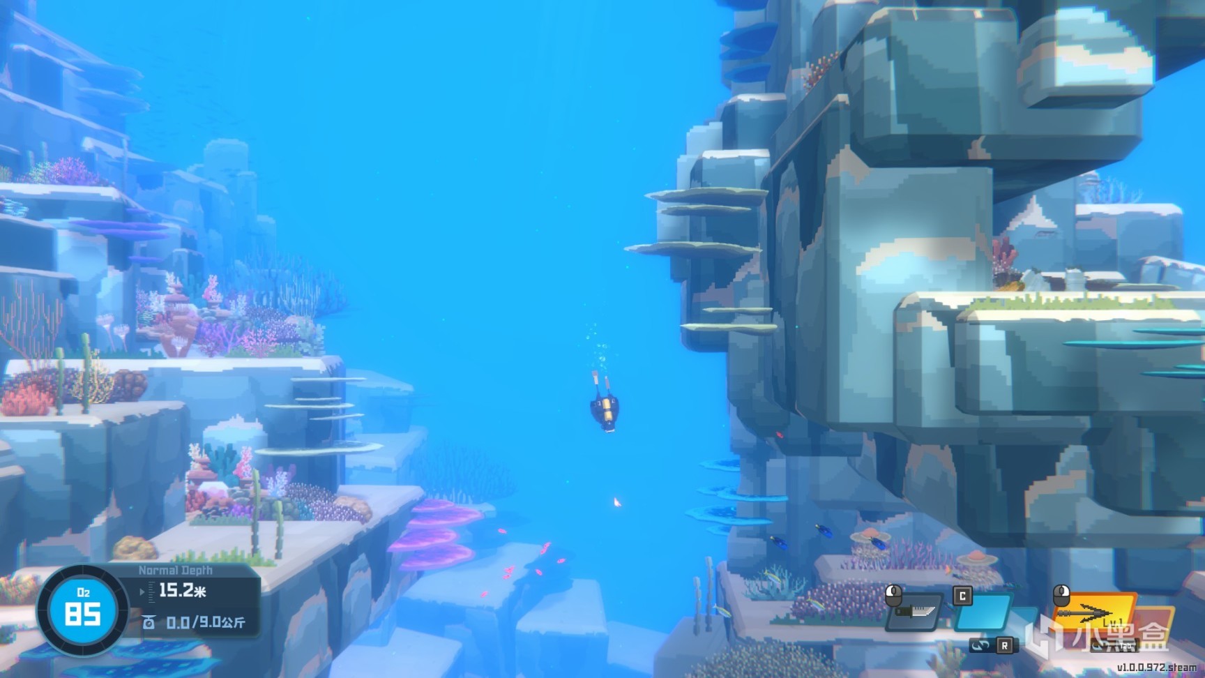 對付不同的魚,需要不同的應對思路。例如對付蛋黃水母、星斑叉鼻魨等用水下刀好,雜斑盔魚等用魚叉比較好。要在規定的時間內,儘可能地捕捉更多的食材,對玩家的戰鬥技巧還是蠻高的。而且,在水下,還有各種水流和危險物,需要玩家利用精巧的走位來躲避。隨着遊戲的進行,會解鎖越來越多的功能,例如允許瞬間回到水面上的逃生艙,可以在水下快速移動的水下小摩托。整個潛水過程充滿了趣味性,一點都不枯燥。