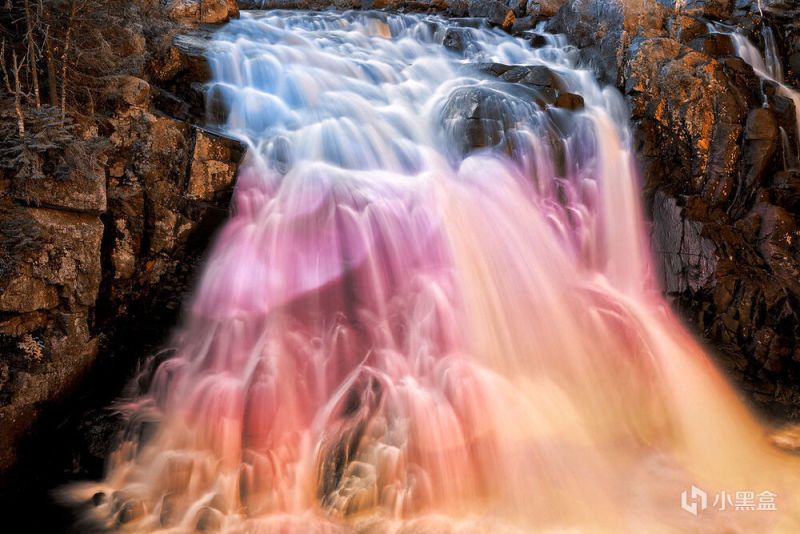 彩虹瀑布的另一張照片是在黎明時分。注意五彩的光芒,後面有一個出口。