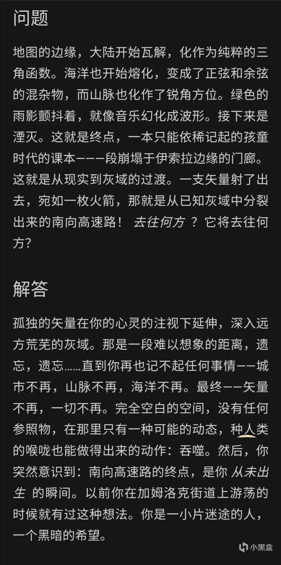 游戏的结局略显荒诞,游戏整体想表达的东西极其隐晦,留给玩家们充足的想象空间,每个人对游戏的理解肯定都是不尽相同的。