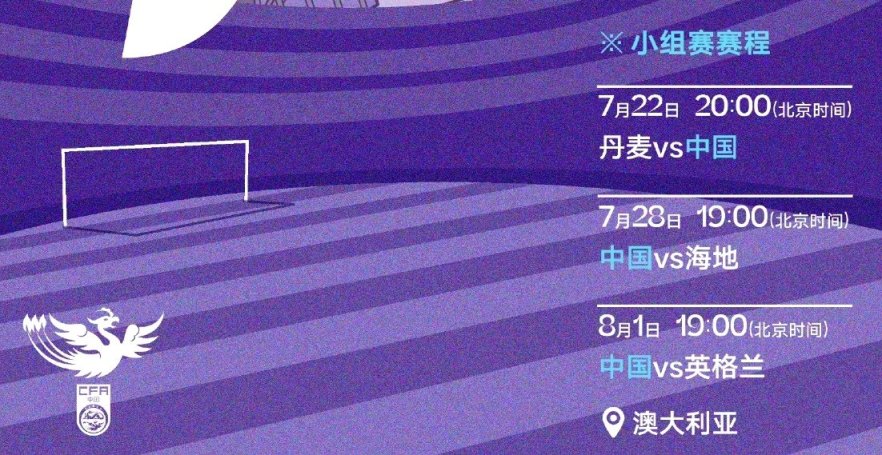 7月22日,中國女足首場對陣丹麥,隨後在7月28日對陣海地,8月1日對陣英格蘭