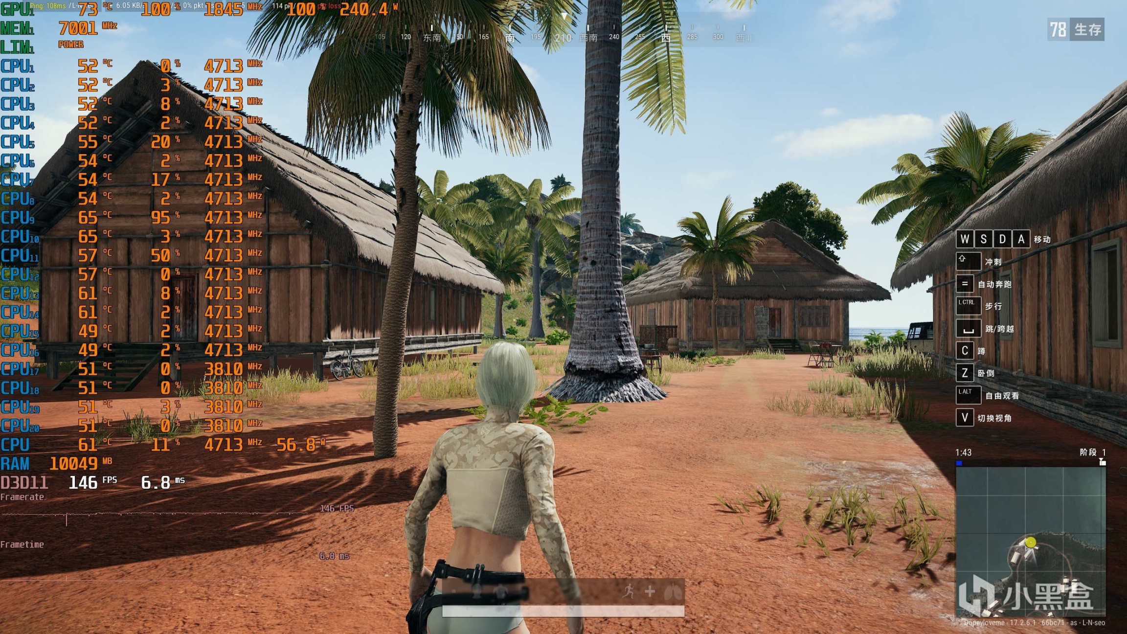 ▼遊戲實測,絕地求生PUBG,2K分辨率,全高畫質,室外遊戲幀數在146幀左右。