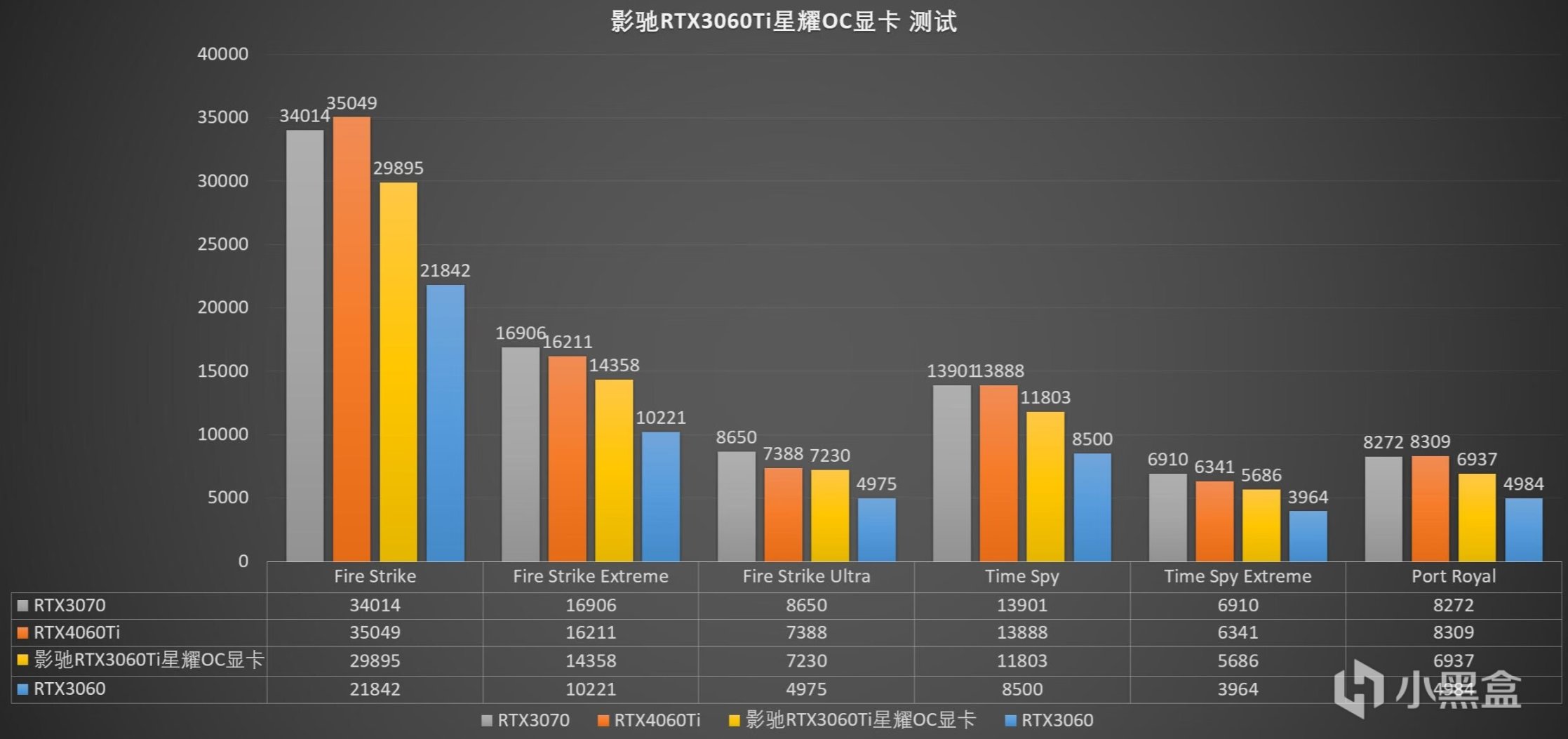 ▼簡單跑個3Dmark的理論測試,RTX3060Ti的性能表現還是非常不錯的。在低分辨率下,比RTX4060Ti弱一點,在高分辨率下,差距要小很多,甚至沒什麼差距。如果顯卡換成RTX4060的話,直接領先。