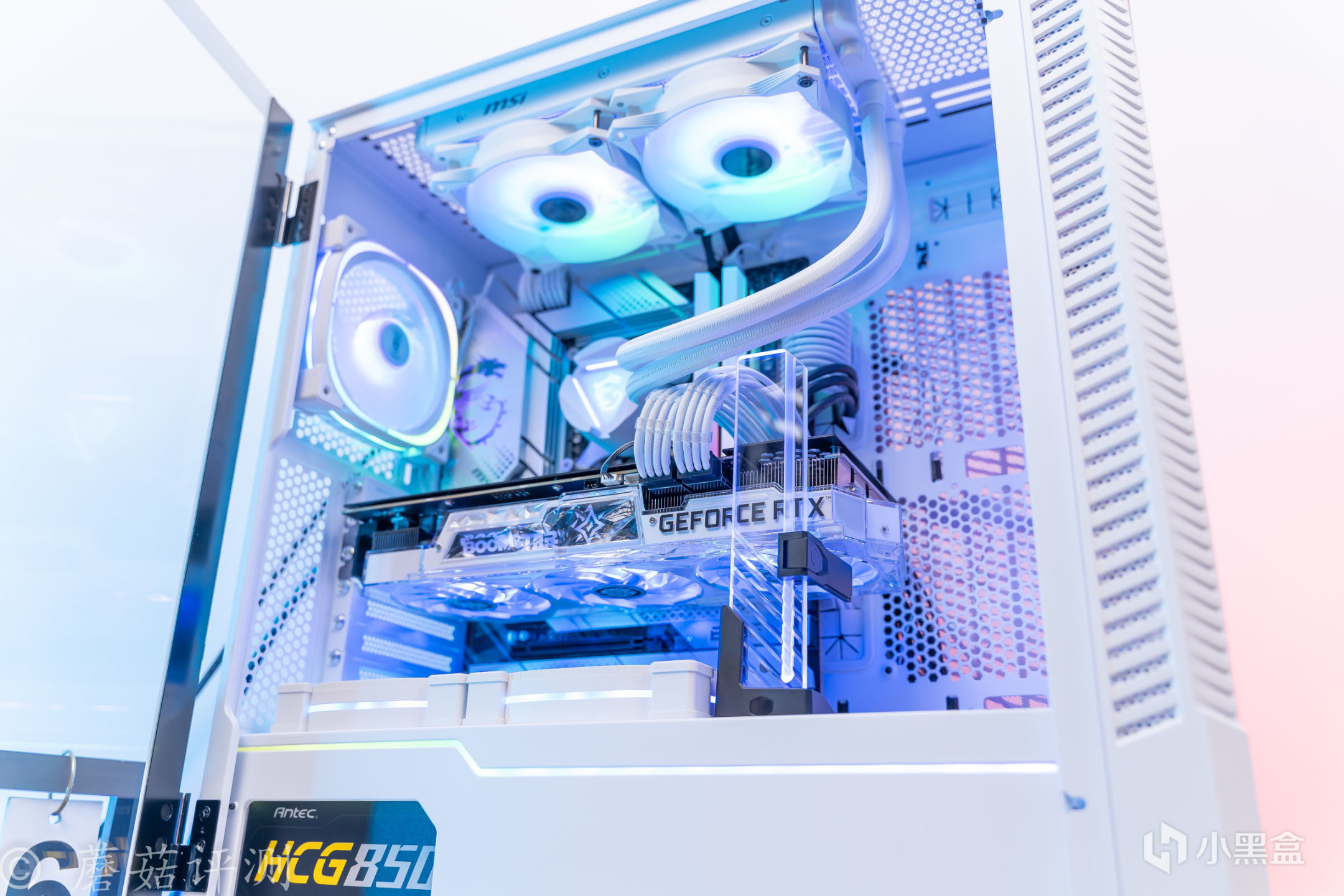 ▼機箱是微星的刀鋒100R白色定製版機箱,機箱的側面是大面積的玻璃側透面板,外觀非常漂亮。