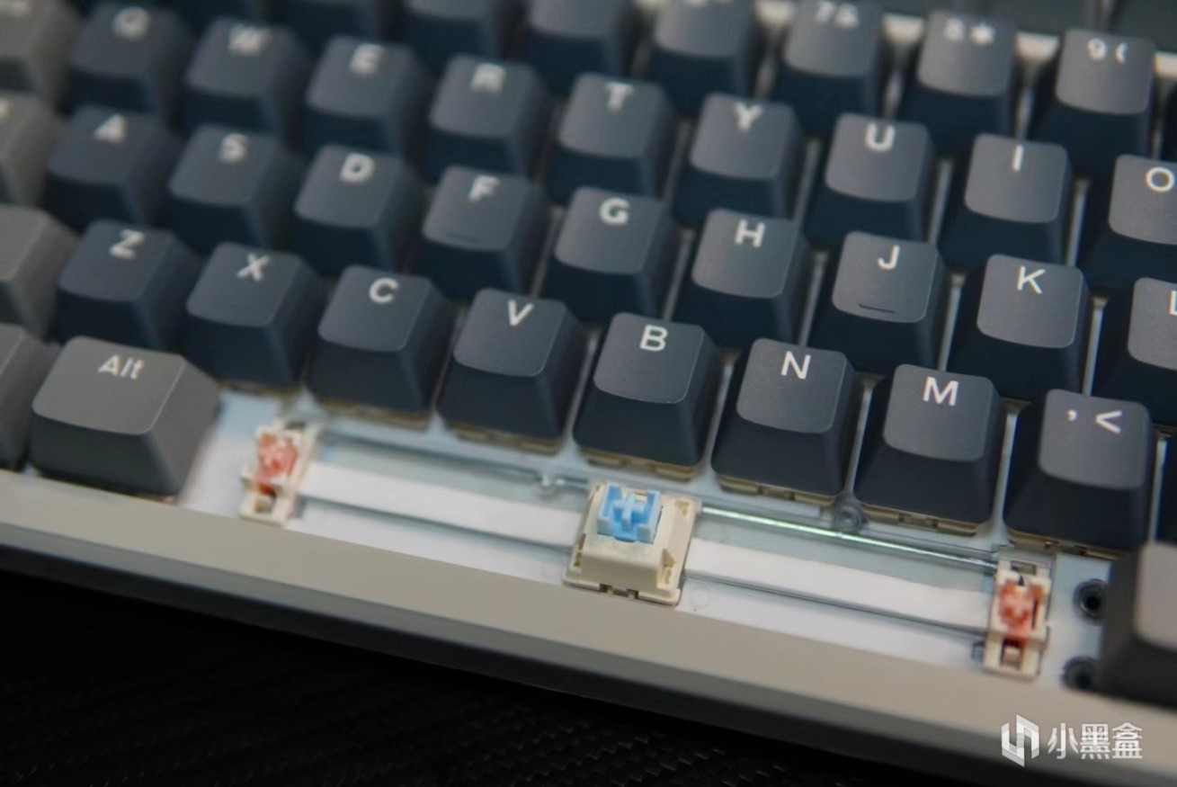 鍵盤大鍵位置,做了填充能在一定程度上面減小空腔音的存在。衛星軸也經過了潤滑,大鍵按壓一直,聲音是比較清脆的,沒有什麼差別。