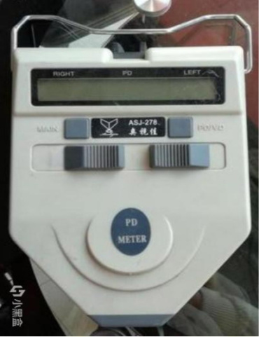 獲得大致的屈光範圍後,則會用到下面這個儀器。下面這個儀器是用於測量瞳距的。配鏡是需要知道瞳間距,才能配出適合的眼鏡。檢測時雙手持瞳距儀,注視裏面的綠燈,檢查單眼瞳距則閉上另一隻眼。