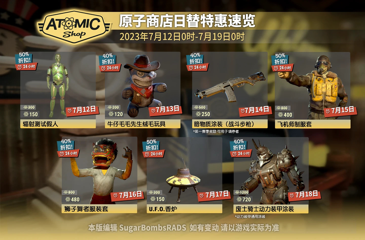 本周日替重点推荐:暗物质涂装(战斗步枪)、飞机师制服套组、废土骑士动力装甲涂装