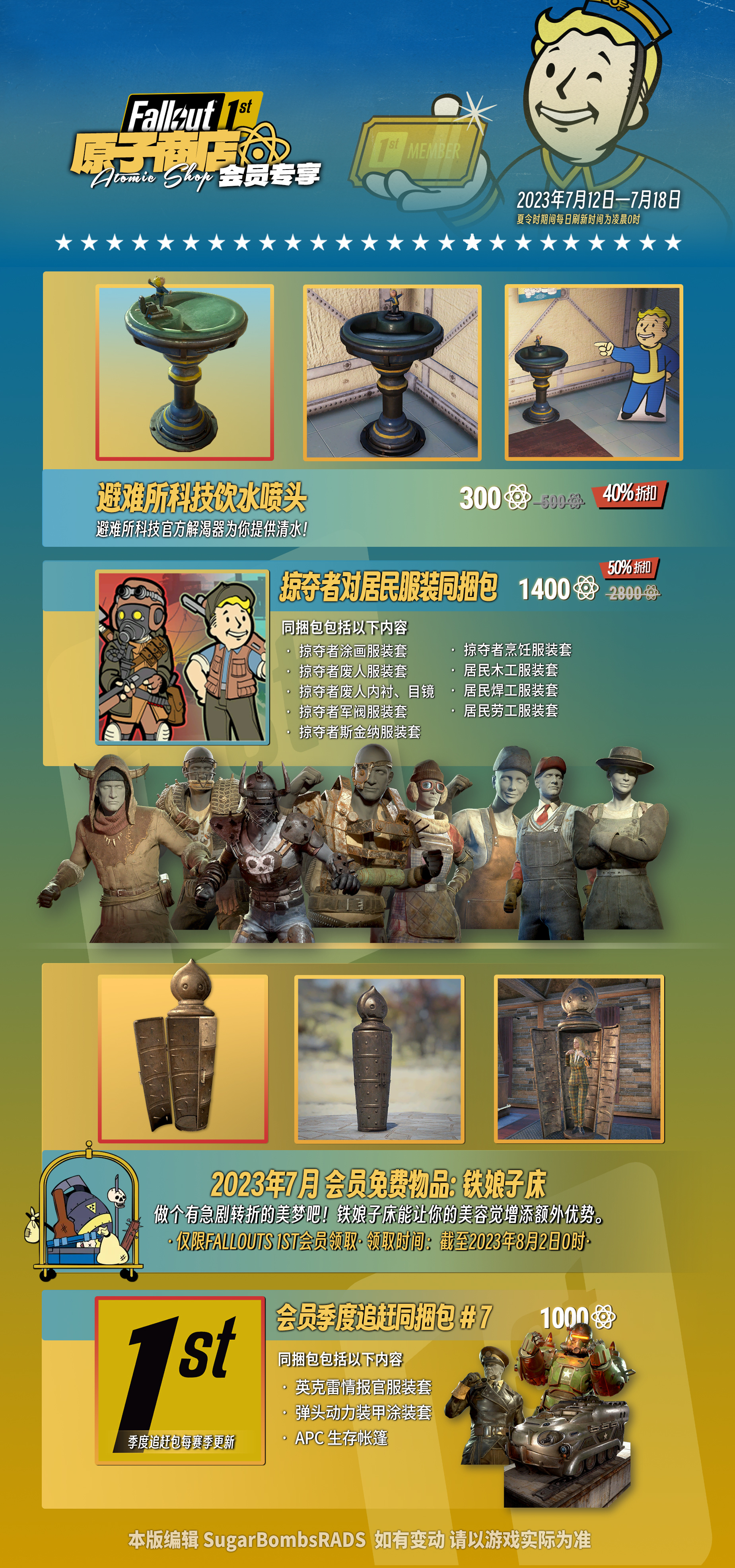 会员专享:掠夺者对居民服装同捆包、避难所科技饮水喷头