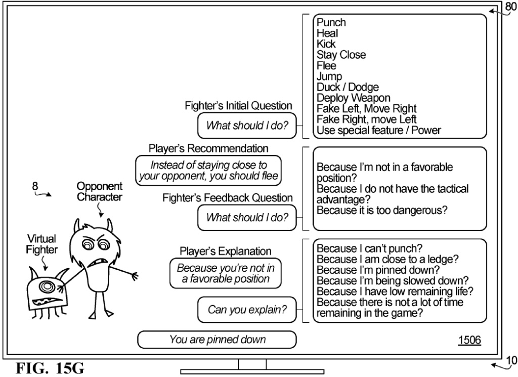 据 SE 称,通过一个提议系统,玩家将通过发出油管要执行的游戏动作的指令提供“前后关系反馈”来“影响虚拟角色的行为”。NPC 接受的训练越多,他们的行为就越具有一致性。专利称这“有助于提高玩家满意度”。